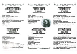Eucaristías: 8:00 AM, 10:00 AM, 12:00 M, 4:00 PM y 6:00 PM.