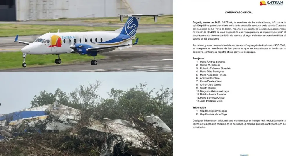 La ministra de Transporte, María Fernanda Rojas, confirmó el fallecimiento de los 15 ocupantes de la aeronave: “No hay sobrevivientes en el accidente de avión de Satena en Norte de Santander”, puntualizó la funcionaria.