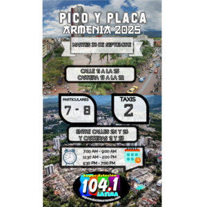 🚕 Para taxis, la medida aplica si el número interno (el que está en la puerta del vehículo) termina en 2, desde las 5:00 a. m. hasta las 5:00 a. m. del día siguiente.